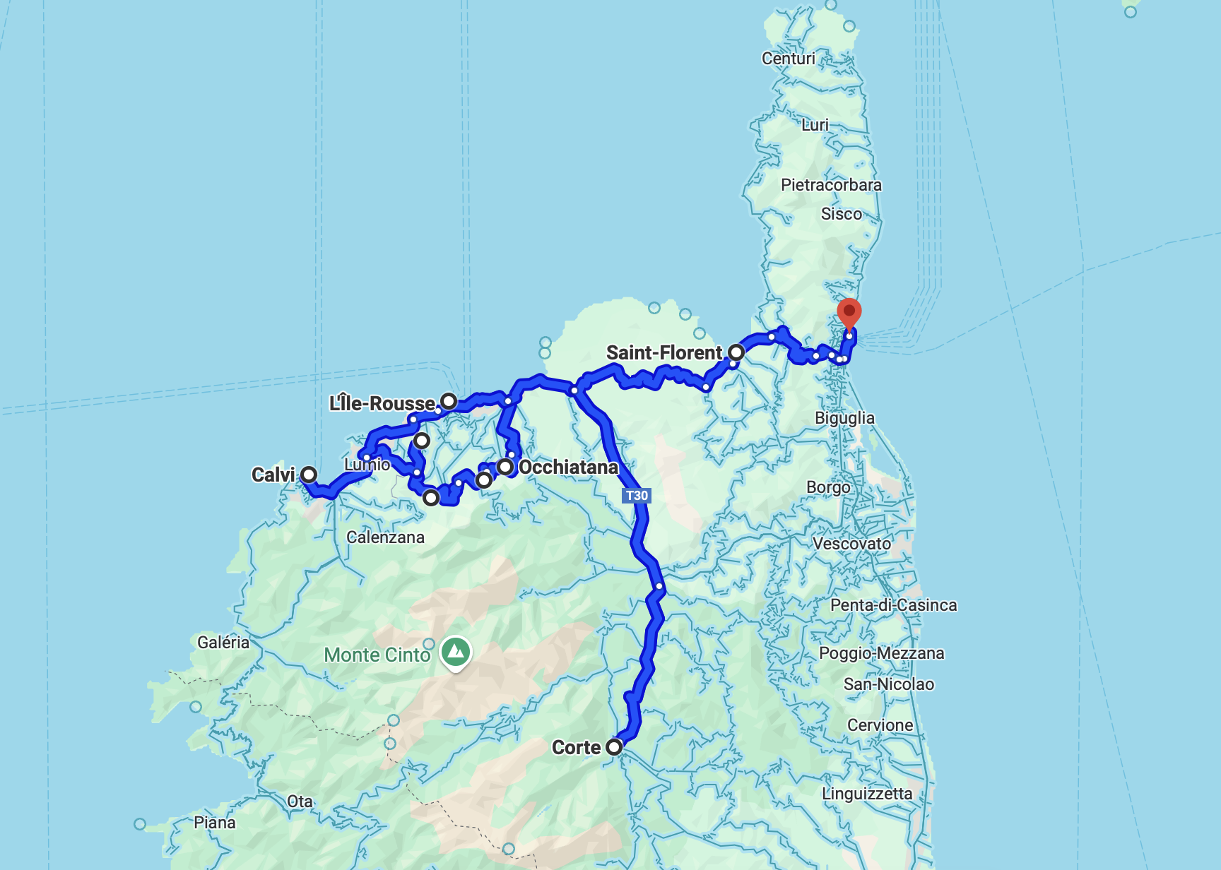 Așa că vă dați seama că tot ce am planificat s-a dus pe apa sâmbetei, pentru că nu îl puteam lăsa singur în casă foarte mult timp, iar afară îmi era teamă să nu se accidenteze din nou, că el, bietul, se crede Batman mereu. Și pe principiul că insula asta e tot aici, ne-am concentrat plimbările și vizitările la maxim 1 oră de condus de cazare, în partea de nord a Corsicii. Din bucla mare programată, ne-a ieșit un cerculeț mic de tot, pe care sper să-l putem mări cândva.